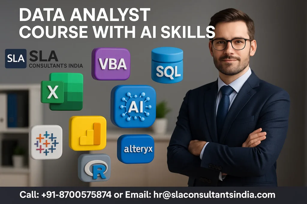 SLA Consultants Delhi offers an industry-leading Data Analyst Course in 2026, designed to equip learners with AI-powered skills and comprehensive job support for successful career transformation. This 5-6 month certification program covers essential tools and techniques such as Advanced Excel with VBA/Macros, SQL, Python, R programming, Power BI, Tableau, Alteryx ETL, and SAP BI/BO, complemented by Microsoft 365 Copilot for AI-enhanced data analytics. Delivered by expert trainers with over 10 years of corporate experience, the course involves live projects, hands-on assignments, and real-time datasets, ensuring practical exposure and industry readiness.