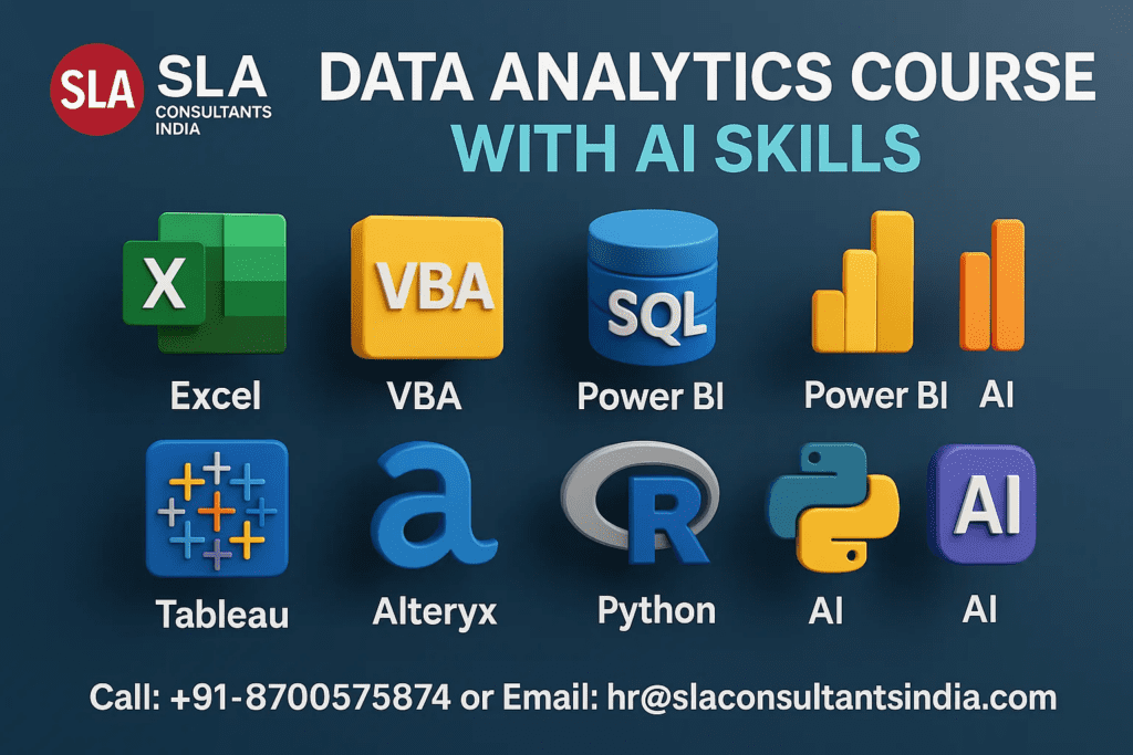 SLA Consultants India offers a premier job-oriented Data Analyst Certification Course accessible in Delhi pin code 110065, featuring live online training optimized for Chandigarh participants led by IIT faculty experts. The program covers Excel mastery, VBA automation, MIS reporting, Tableau visualization, Power BI dashboards, Python data science, and Spotfire for advanced scientific analytics and multivariate exploration. The July 2026 Offer guarantees 100% MNC job placement, positioning SLA as Delhi NCR’s top training center.
